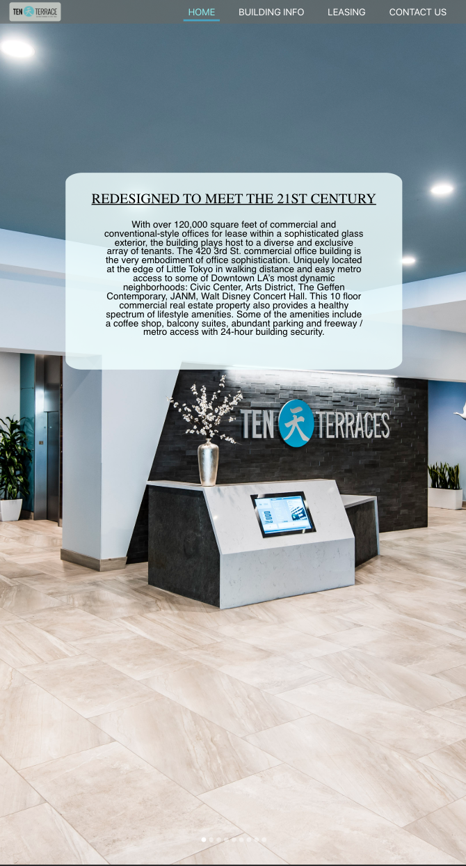 I was approached by the landlord to help improve occupancy at their building. To improve leasing activity and online presence, I built a building website to help market the property beyond what the leasing brokers were capable of doing. The site was a multi-page website offering the public property info, building photos, leasing info, new developments, events, and contact information.